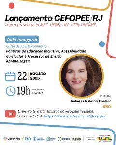 Curso de aperfeiçoamento: “Políticas de Educação Inclusiva, Acessibilidade Curricular e Processos de Ensino e Aprendizagem“, promovido pelo CEFOPEE/RJ – Centro de Formação de Professores de Educação Especial no estado do Rio de Janeiro