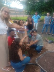 Já a professora Roberta Arruzzo destacou que o plantio da árvore Ipê Amarelo representa a continuidade de todo um processo que vem sendo desenvolvido há bastante tempo no câmpus do IM/UFRRJ, qual seja o de trazer espécies nativas de volta para o local da instituição, contribuindo para o aumento da arborização e da humanização do espaço acadêmico, além do enfrentamento da crise climática que estamos atualmente vivendo.