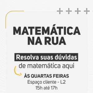 O Projeto “Matemática na Rua – tire suas dúvidas de Matemática aqui com a gente” está sendo realizado de setembro a novembro deste ano, sempre às quartas-feiras, das 15 às 17 horas.