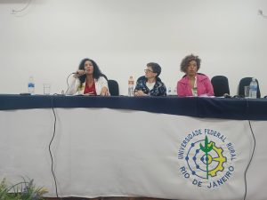 Em seguida, a deputada federal Talíria Petroni, do Partido Socialismo e Liberdade (PSOL), tomou a palavra e fez uma saudação inicial ao público presente no auditório do Instituto Multidisciplinar. Ela contou da alegria de estar presente numa universidade pública inserida numa das regiões mais carentes do estado do RJ: a Baixada Fluminense. Segundo ela, por aqui o orçamento só chega “depois”, bem como também a visibilidade sobre a violência e a exclusão social. A parlamentar do PSOL ressaltou a importância cultural e econômica desse território, que sofre o estigma de ser uma das regiões mais excluídas e esquecidas pelos governos, onde as políticas públicas tardam a chegar, contribuindo para aumentar o abandono e a vulnerabilidade social local. Talíria aproveitou para dizer que seu mandato, a exemplo do mandato da parlamentar petista, também está presente na luta pela democratização do acesso à terra, fato que revela o nível crescente de desigualdade social no país, e onde a alta concentração de poder e dinheiro nas mãos de poucas pessoas é geradora de fome e miséria entre a classe trabalhadora.
