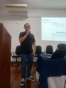 A segunda atividade ocorrida no dia 12 de agosto foi a palestra do professor Marcelo Zamith (foto), do Departamento de Ciências da Computação (DCC/IM/UFRRJ). Ele discorreu sobre o tema: “Inteligências artificiais generativas: inimigas ou aliadas ?” .